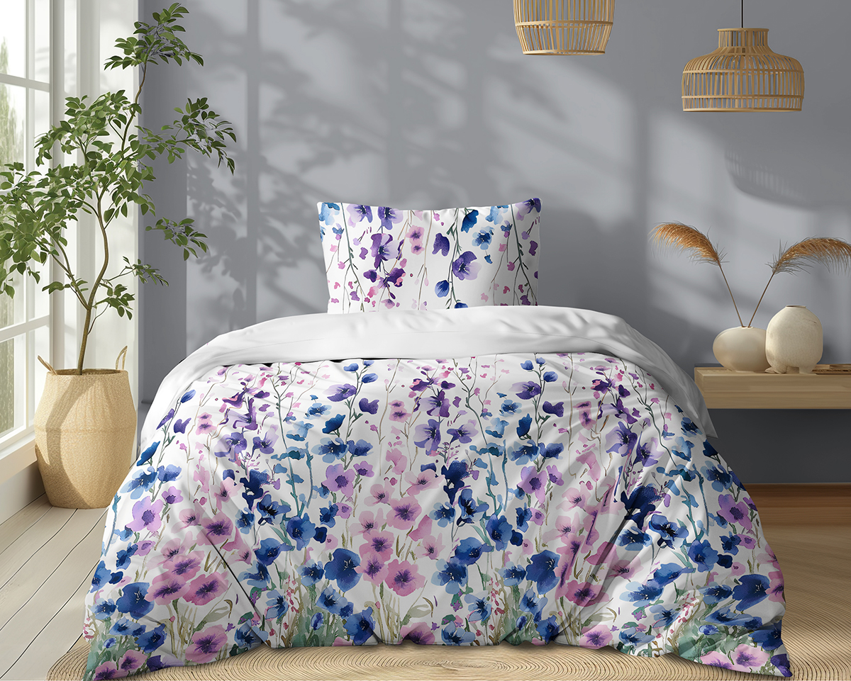 Pościel bawełniana 140x200 niebieskie kwiaty